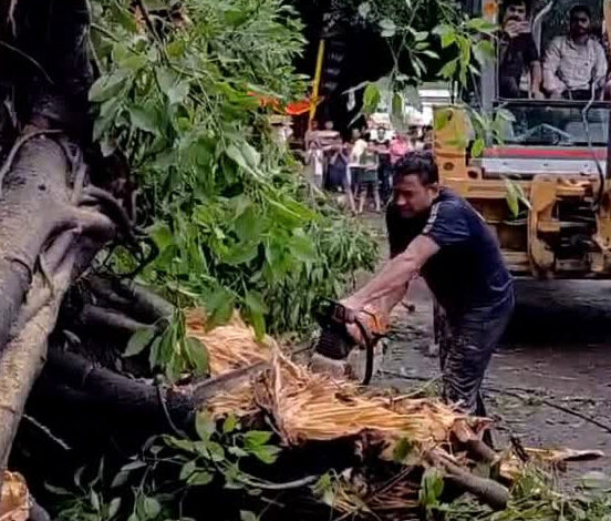 सड़क पर गिरे विशालकाय पेड़ को हटाने के लिए अग्निशमन और एसडीआरएफ की टीम को बुलाया गया। टीम द्वारा करीब 1 घंटे से अधिक समय के प्रयास के बाद सड़क को सुचारू किया गया।