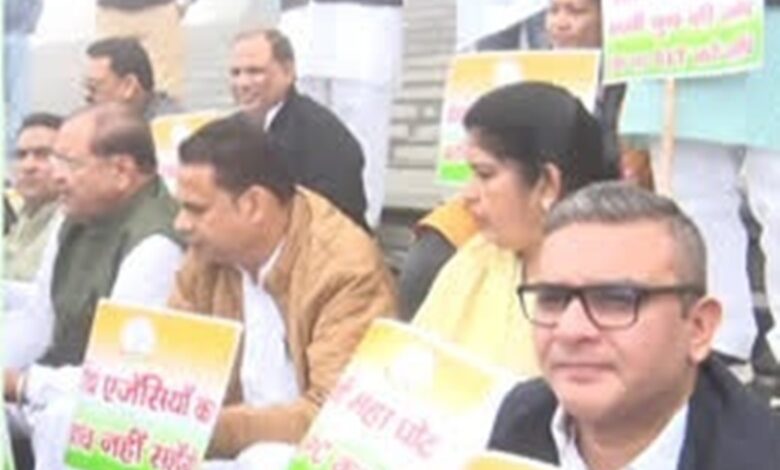 विधानसभा सत्रः कानून व्यवस्था सहित कई समस्याएँ पर कांग्रेस विधायकों ने किया प्रदर्शन