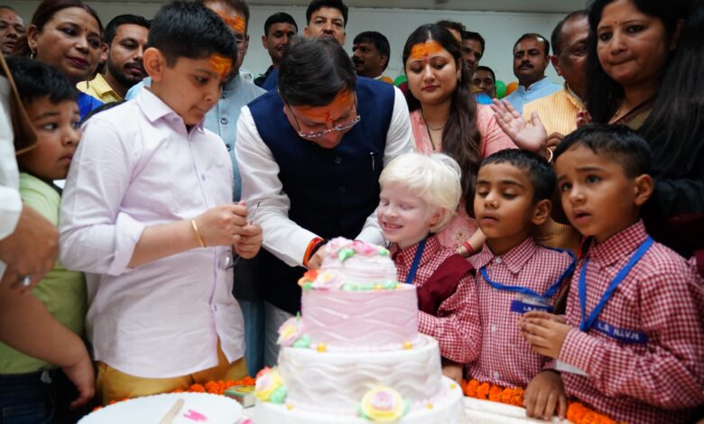 दृष्टि बाधितार्थ बच्चों के बीच केक काटकर धामी ने मनाया अपना जन्मदिन