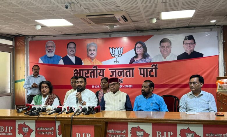पत्रकार वार्ता में राजपुर विधायक खजान दास, प्रदेश उपाध्यक्ष मुकेश कोली, एससी एसटी मोर्चा की राष्ट्रीय पदाधिकारी स्वराज विद्वान, मोर्चा राष्ट्रीय कार्यसमिति सदस्य भगवंत मकवाना, प्रदेश सह मीडिया प्रभारी राजेंद्र नेगी, प्रदेश प्रवक्ता कमलेश रमन समेत वरिष्ठ पदाधिकारी मौजूद रहे।