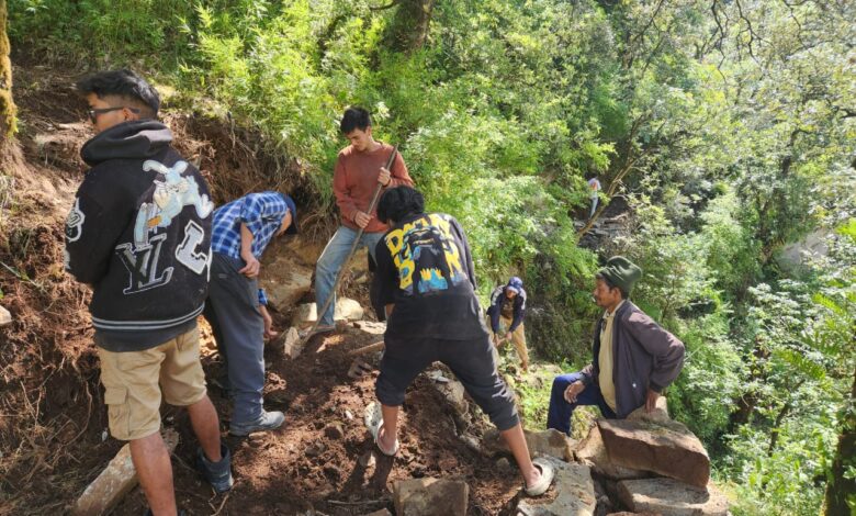 सोनप्रयाग से गौरीकुंड के बीच वाश आउट एरिया के सामने तैयार हो रहा डेढ़ किमी पैदल बाईपास,