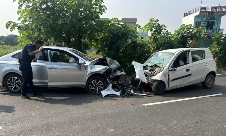 फॉक्सवैगन व ऑल्टो कार की टक्कर से 2 लोगों की मौत, 3 घायल
