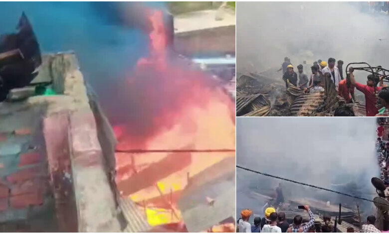 झोपडियों में रखे पांच गैस सिलेंडर आग की चपेट में आकर फटे