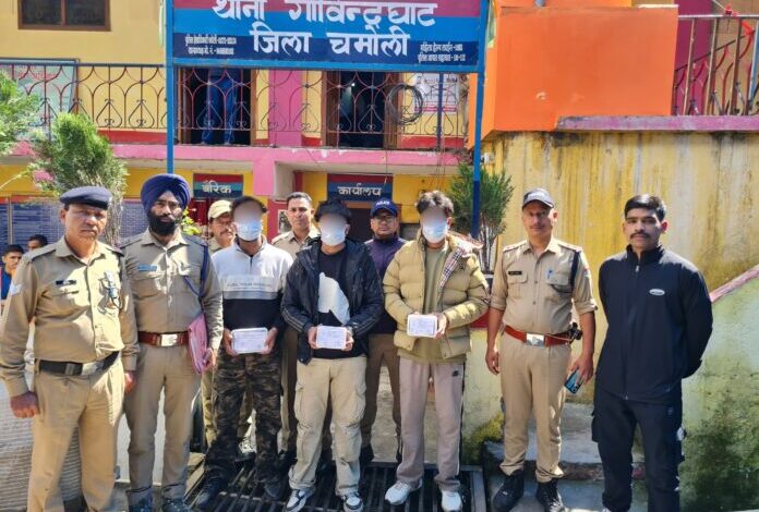 जानकारी के अनुसार बीती 20 जून को गाजियाबाद निवासी प्रेम कुमार पुत्र धर्मेंद्र कुमार ने थाना गोविन्दघाट पर सूचना दी कि वे अपने दो पुरुष व दो महिला साथियों के साथ फूलों की घाटी घूमने आए थे। बताया कि 19 जून की रात करीब 12 बजे घांघरिया स्थित लक्ष्मण गंगा नदी पर बनी पुलिया के पास तीन अज्ञात बदमाशों ने उन्हें रोक लिया। बदमाशों ने उन सभी के साथ लाठीकृडंडों व पत्थरों से मारपीट की। उन्होंने प्रेम कुमार की जेब से पर्स व उसमें रखे 3 हजार रुपये छीन लिए। बदमाशों ने उनका कॉलेज पहचान पत्र भी लेकर फोटो खींची और धमकी दी कि यदि पुलिस को सूचना दी तो वे कॉलेज आकर गोली मार देंगे। इसके अलावा, बदमाशों ने उनसे व उनके सभी साथियों के मोबाइल फोन छीन लिए और जबरदस्ती कोड पूछकर कुल 47 हजार रुपये गूगल पे/फोन पे के माध्यम से किसी अज्ञात नंबर पर ट्रांसफर करवा दिए। बदमाशों ने महिला साथियों के साथ भी अभद्रता की और डरा धमकाकर उनकी तलाशी ली। मामले की संवेदनशीलता और पर्यटन क्षेत्र को देखते हुए पुलिस ने तत्काल मुकदमा दर्ज कर लुटेरों की तलाश शुरू कर दी गयी। लुटेरों की तलाश में जुटी पुलिस टीमों द्वारा कड़ी मशक्कत के बाद बीती रात घटना में शामिल तीनों शातिर बदमाशों को घांघरिया बायपास रास्ते से गिरफ्तार कर लिया गया। जिनके कब्जे से लूटा गया माल, जिसमें 18 हजार रुपये नगद और 1 आईफोन शामिल है, बरामद किया है। गिरफ्तार बदमाशों की पहचान गुरविंदर सिंह उर्फ गोपी पुत्र बलजिंदर सिंह, राजेंद्र सिंह पुत्र लखविंदर सिंह और वंशदीप सिंह पुत्र लखविंदर सिंह के रूप में हुई है। ये तीनों निवासी टीमोंवाल, थाना खलचिया, जनपद अमृतसर (पंजाब) के रहने वाले हैं। बहरहाल पुलिस ने उन्हे न्यायालय में पेश कर जेल भेज दिया है।
