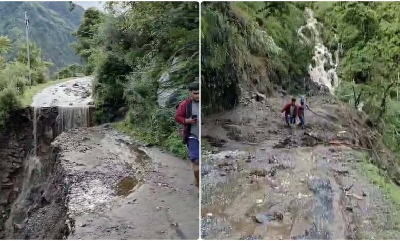 बारिश और भूस्खलन के कारण कई स्थानों पर सड़कें धंसी