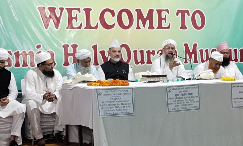 देहरादून। सीरत उन नबी कमेटी देहरादून की ओर से एक रूहानी और प्रेरणादायक कार्यक्रम ‘सीरत-उन-नबी’ का आयोजन टर्नर रोड स्थित तस्मिया संग्रहालय में किया गया। कार्यक्रम की अध्यक्षता वरिष्ठ समाजसेवी डॉ. एस. फारूक ने की। इस मौके पर अनेक मशहूर उलेमा-ए-कराम और इस्लामी विद्वानों ने शिरकत की और हुजूर सरवर-ए-कायनात हज़रत मुहम्मद मुस्तफा सल्ललाहु अलेही वसल्लम की सीरत-ए-पाक और इंसानियत के लिए उनके पैग़ाम पर रोशनी डाली।