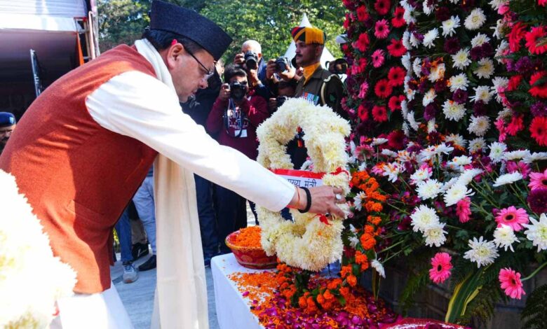 देहरादून। मुख्यमंत्री पुष्कर सिंह धामी ने मंगलवार को विजय दिवस के अवसर पर गांधी पार्क, देहरादून में आयोजित श्रद्धांजलि एवं सम्मान समारोह कार्यक्रम में प्रतिभाग करते हुए शहीद स्मारक पर पुष्पचक्र अर्पित कर वीर बलिदानियों को श्रद्धांजलि दी। इस अवसर पर उन्होंने 1971 के युद्ध के सैनिकों और शहीदों के परिजनों को सम्मानित भी किया। कार्यक्रम में मुख्यमंत्री ने घोषणा की कि सैनिक कल्याण निदेशालय और जिला सैनिक कल्याण कार्यालय (डीडीहाट, हरबर्टपुर, पिथौरागढ़ एवं हरिद्वार) इन सभी पाँच कार्यालयों में सरकारी वाहन दिए जाएंगे।